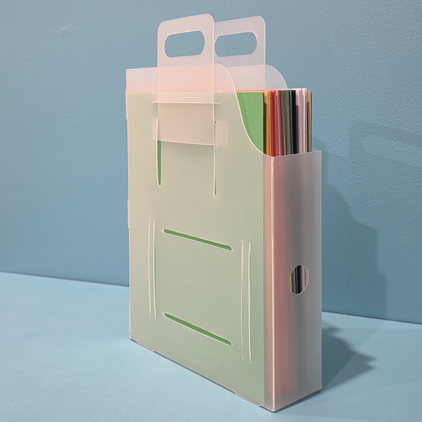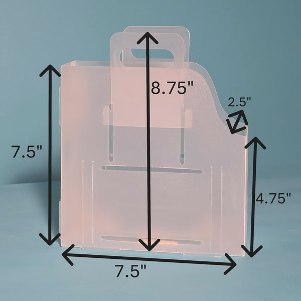 Each Paper Handle-It holds up to 300 sheets of paper or cardstock, making it ideal for everything from bills and tax documents to sticker sheets, planner inserts, and printables. The repositionable handles offer three placement options, so you can customize your setup for shelves, totes, desktops, or mobile carts. It’s lightweight, durable, and designed to move with you—whether you're working from home, crafting on the go, or setting up a classroom command center. This 8.5x11 Paper Handle it is tall enough for A4 too. Find things even more quickly when you add our 8.5x11 Flip Flap Pockets or Fancy Folios. Shop for your 8.5x11 Paper Handle-Its now.