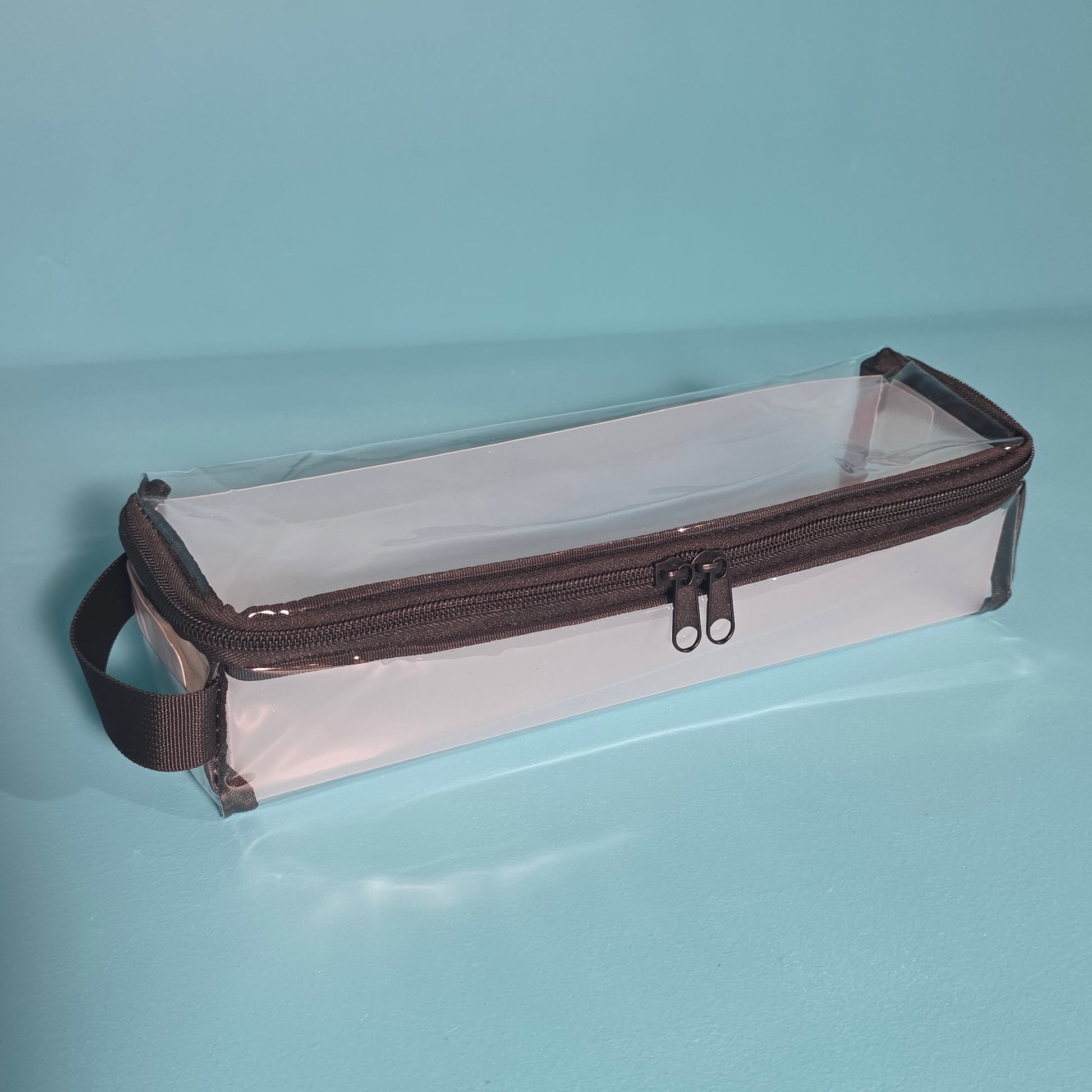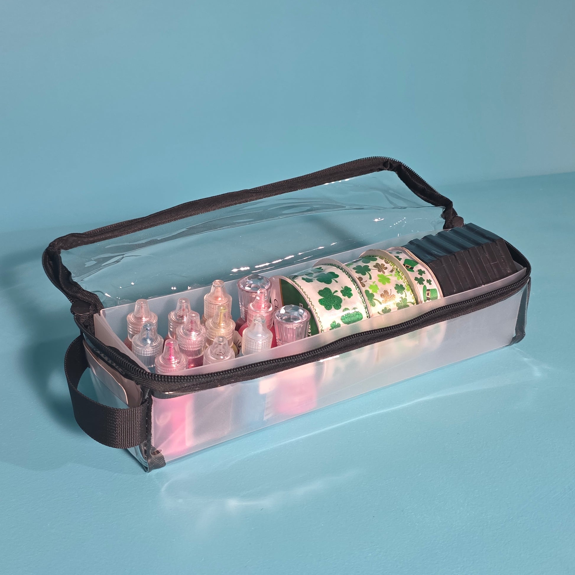 - 1 Clear vinyl bag with black trim and zipper